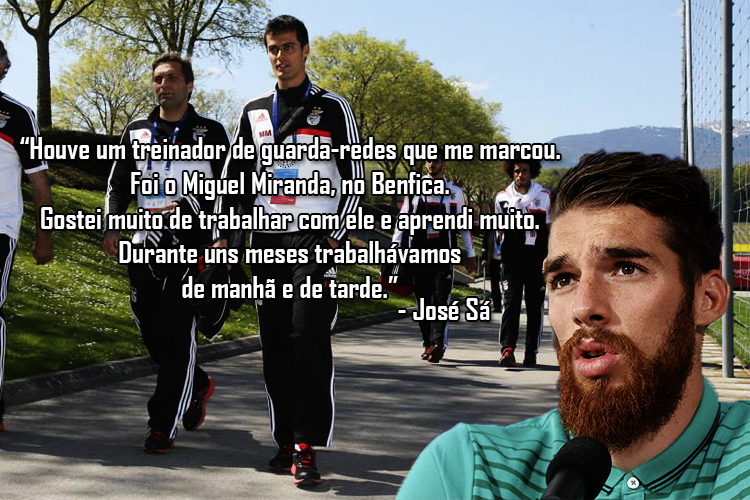 José Sá foi entrevistado pelo Público e pelo jornalista Tiago Pimental, abordando questões empresariais, o Europeu de sub-21, as chances no CS Marítimo, entre outros assuntos. Em resposta à questão “Qual foi o treinador mais influente no seu percurso?”, não teve dúvidas em apontar o nome de Miguel Miranda, técnico dos guarda-redes dos sub-19 do SL Benfica: